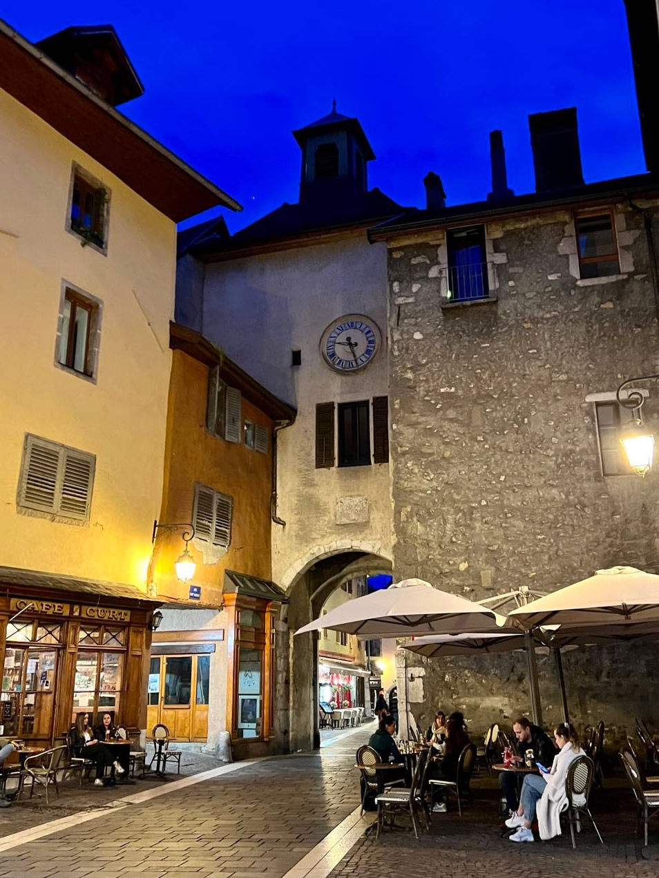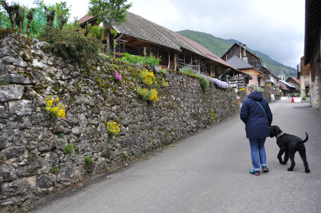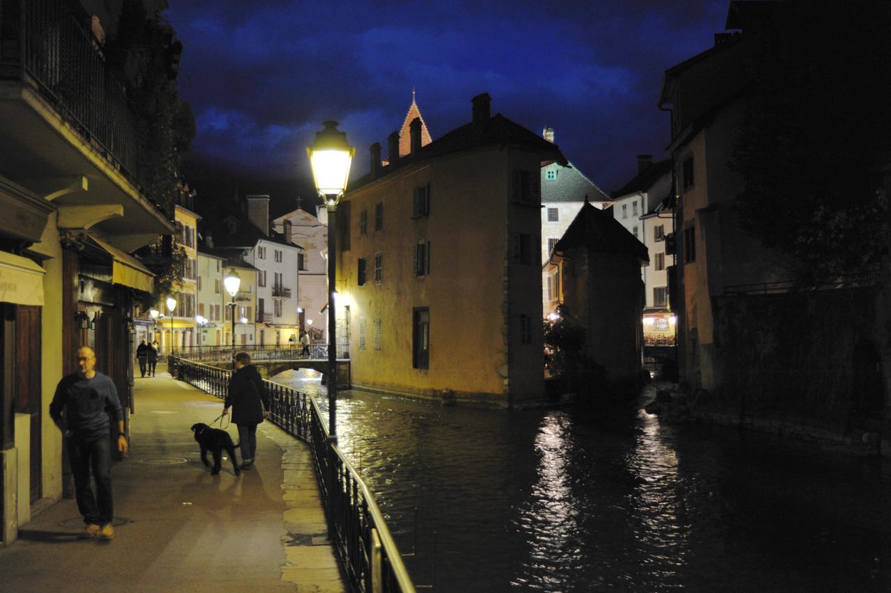 Annecy, am gleichnamigen See gelegen, soll laut Michelin unbedingt einen Besuch wert sein. Zudem wird ein verlockender, käseüberbackener Kartoffelauflauf angepriesen (Tartiflette). Ein nachmittäglicher Stadtrundgang führt uns in ein Gasthaus, um die Empfehlung zu kosten. Wir sind überzeugt. Die Hunde bekommen zuerst einen Wassernapf serviert, bevor wir dran sind. Sowohl die Altstadt als auch der See mit seiner idyllischen Lage im Hochgebirge sind fabelhaft.