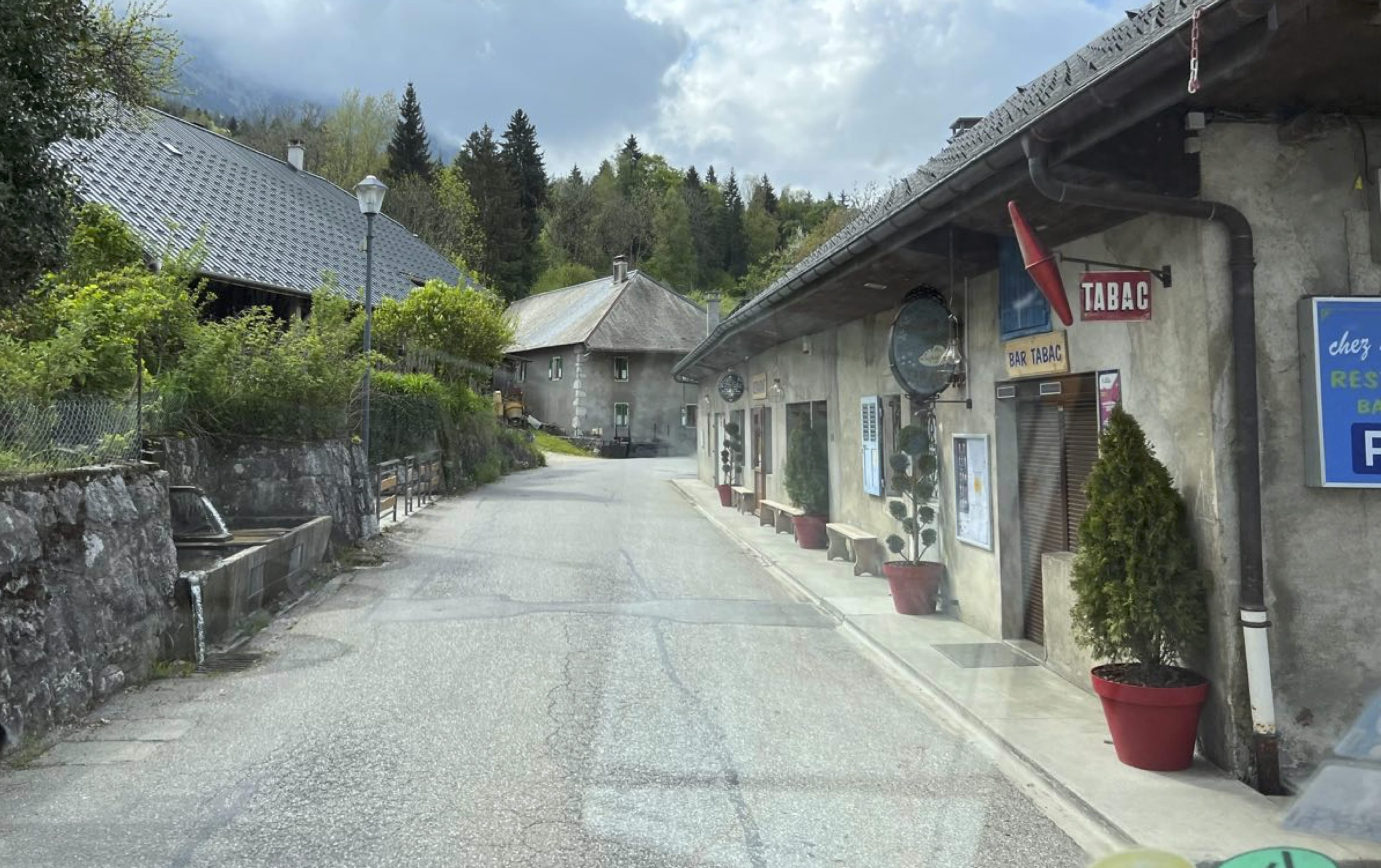 Über eine schmale Straße führt uns eine Umleitung in Richtung Cret de Chatillon. Beim Blick hinauf sagt uns das Wolkenspiel kein gutes Wetter voraus. Sicht da oben gleich null. Schmale Ortsdurchfahrten leiten uns runter nach Le Chatelard und dann in den Weiler Compote (248 Einwohner). Das Gasthaus "La Viperine" und die angebotene VE-Stelle für Wohnmobile (Versorgung- und Entsorgung) sowie die abendliche, bodenständige Verköstigung bereiten dem Reisetag einen entspannten Ausklang. Kira verschafft sich einen Ausblick auf die Hunde nebenan. Der Hünniegang bei frostigen Temperaturen beendet den Tag.