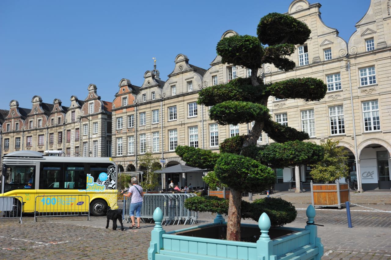Zwecks VE (s.o.) steuern wir Beauvais an. Die Station ist kaputt. Gleiches erfahren wir in Doullens. Also ab nach Arras, was wir sowieso einmal anschauen wollten. Stellplatz klasse, Stadt in so manchen Gassen etwas gewöhnungsbedürftig, die Grand Place und die Place de Heroes sind allerdings beeindruckend. Mittags werden hunderte Kaffeetischchen aufgestellt. Die von uns aufgesuchte "Patisserie" hat alles, nur kein Speiseeis. Endlich gibt es aber die ersehnten Pommes frites mit Chti-Sauce. Die kleine Portion für 3 € schaffen wir zu zweit nicht!