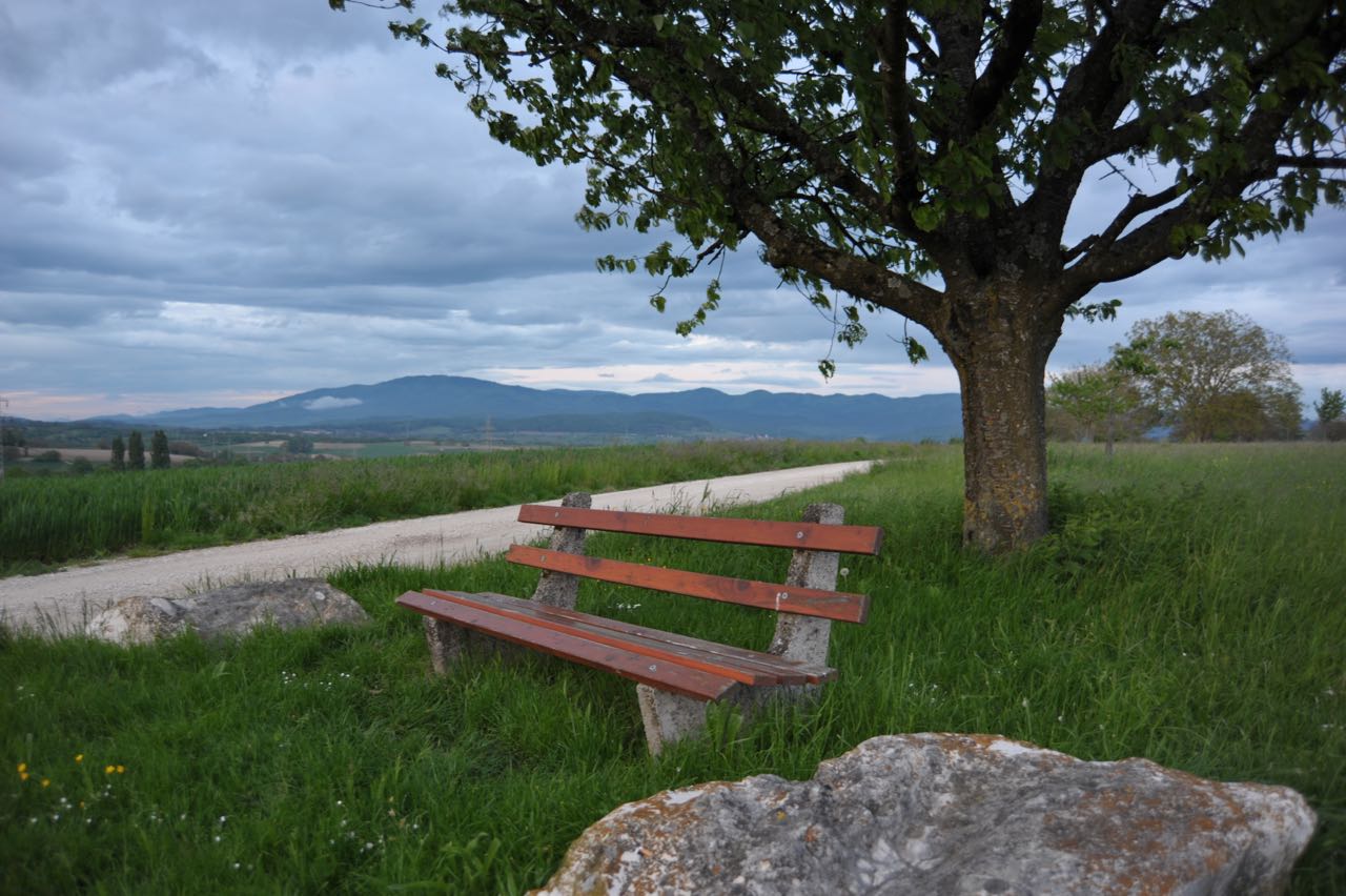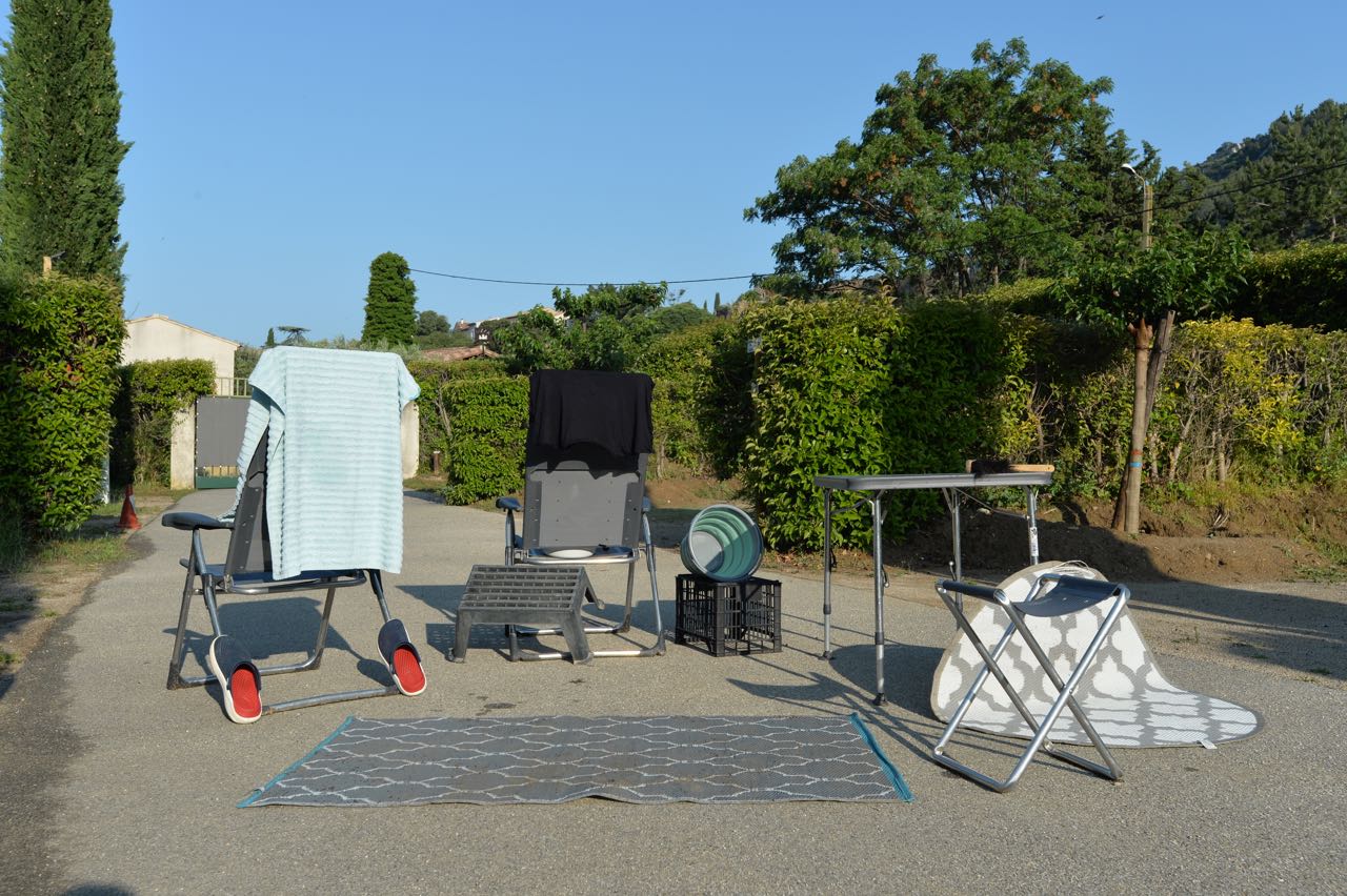 Genug des Reisens, jetzt soll mindestens eine Woche lang „Anker geworfen werden“. Wir schlagen die Zelte in Beaumes-de-Venise auf. Hier laufen wir täglich unsere 10km Mindeststrecke zu den bewährten Zielen. Lafare, Seguret, Suzette, Crillon-le-Brave, Le Barroux, Malaucene. So weit so gut. Immer noch bleiben die Witterungsbedingungen ungewöhnlich anders als erwartet. Vormittags sonnig, ab Nachmittag jedoch Gewitter und Regenschauer. Zum Glück bietet die köstliche Pizzabude nebenan feine Burger und Pizzen zum Abendessen. Nach gut einer Woche und einem Blick auf die Wetterprognose brechen wir nordwärts auf. France-Meteo zeigt uns in der Nordhälfte für die ganze Folgewoche feinsten Sonnenschein. In der Provence bleibt es allerdings bei dem wechselhaften Wetter. Wir schaffen es noch ganz knapp, die getrocknete, zuvor regennasse Ausrüstung vor der nächsten Himmelsdusche zu verladen.