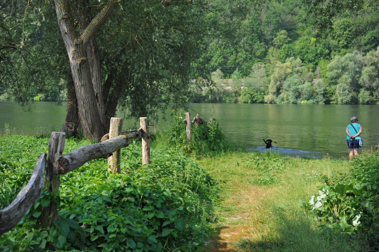 Wir tauschen Meeresrauschen gegen Kunstgenuss. Unser Navi leitet uns über abenteurliche Straßen nach Pont l´Eveque, Evreux und Vernon schließlich nach Giverny. Claude Monet lebte lange Zeit hier und hinterließ für alle Kunstliebhaber aus der ganzen Welt ein grandioses Gesamtwerk und ein traumhaftes Fleckchen Erde. Prädikat: Extrem empfehlenswert! Einschränkung: Es besuchen ca. 800.000 Touristen jährlich diesen Ort – da kann es schon mal ungemütlich werden. Dennoch zu jeder Jahreszeit eine Reise wert. 15 Minuten Fußweg entfernt finden wir gar eine Badestelle mit einem kleinen Sandstrand an der Seine. Die flussauf- und flussabwärts vorüberziehenden Wasserfahrzeuge (Hobbyschiffe mit Solarantrieb, Flusskreuzfahrer, Lastenkähne etc.) werden von uns "fachkundig" beäugt, die herangeschobene Minibrandung erinnert an unseren Strandurlaub. Die Hunde sind beim Badevergnügen überglücklich.