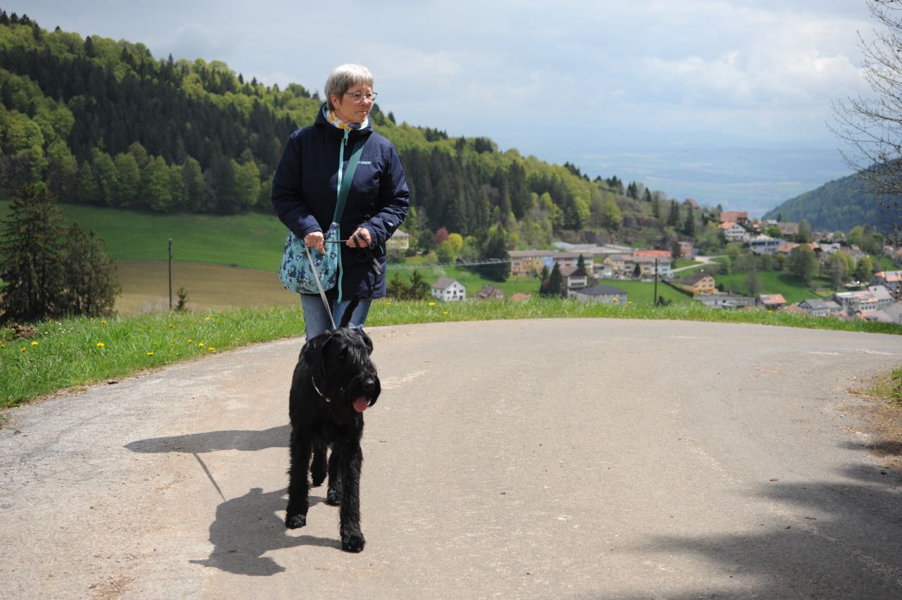 Oberhalb des Neuenburger Sees, in dem kleinen Nest Les-Ponts-de-Martel, befindet sich das größte Hochmoor der Schweiz. Ein ausgezeichnet angelegter Rundweg ermöglicht uns einen interessanten Einblick in die Landschaft sowie in die historischen Verhältnisse, als noch Torf abgebaut wurde. Bei der ortsansässigen Käserei erstehen wir ein passables Stück Käse .... zur Freude aller Zwei- und Vierbeiner. Annettes geliebtes "Michelinmännchen" auf einem Garagentor hebt die Stimmung enorm! Der Wettergott zeigt sich wenig gnädig, aber dennoch können wir ein paar Regenlücken nutzen, um mit den Vierbeinern die typisch alpenländischen Ausblicke zu genießen. Zur Kaffeepause finden wir einen "Foodtruck" an einer Passhöhe. Die Bergabfahrt macht uns fast schwindelig ......