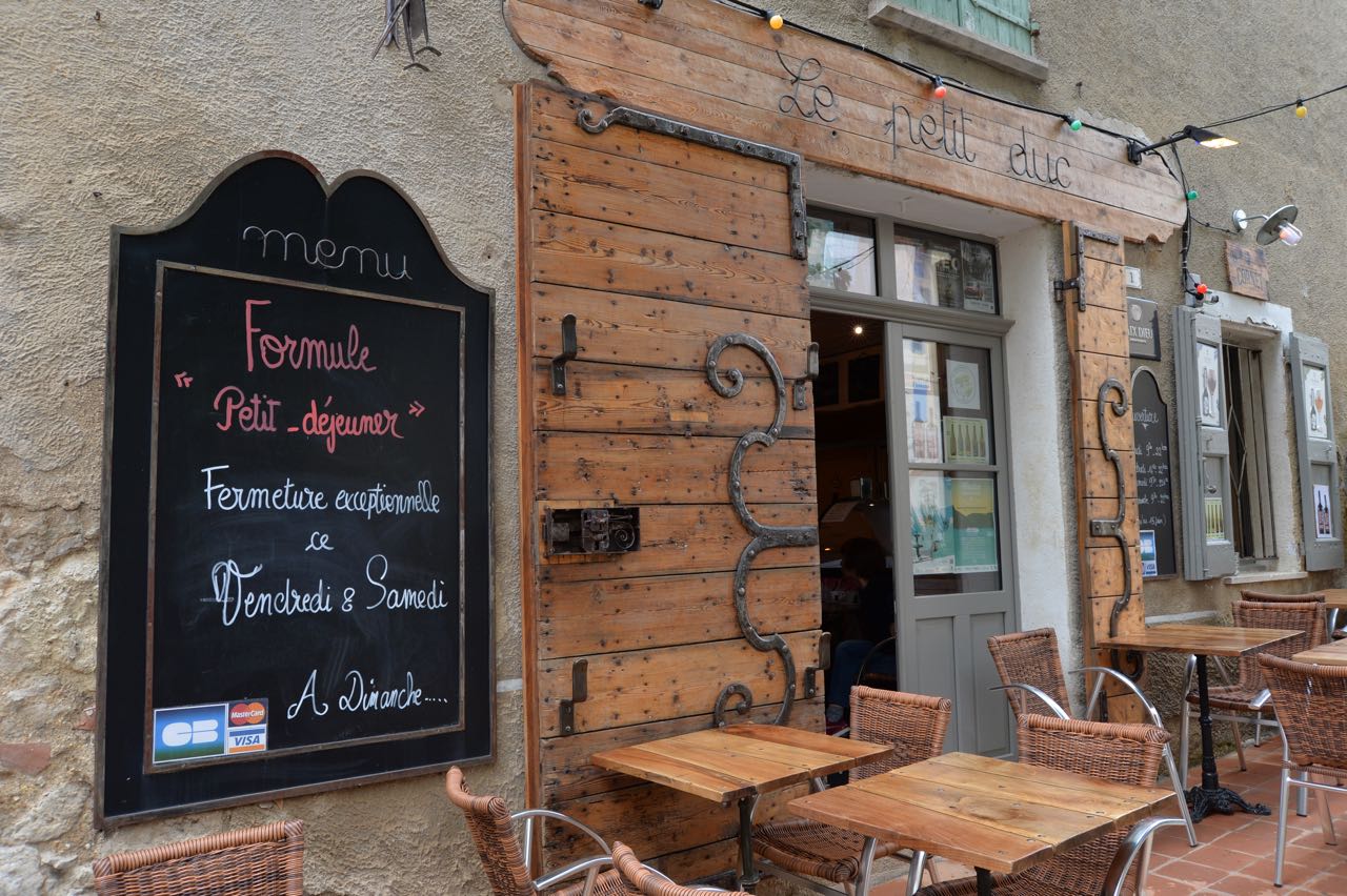 La Garde-Adhemar wenig abseits unseres Nordkurses lädt zur Stippvisite ein. Eine tolle Renaissance-Gartenanlage, ein Belvedere, die Altstadt sowie spinatgefüllte Fleischbällchen im Restaurant L´Absinthe würden uns erwarten. Stimmte alles, das Resto hatte aber Ruhetag. Immerhin zwei croissants und zwei Eiskugeln aus dem Kaffeebecher waren die Ausbeute.