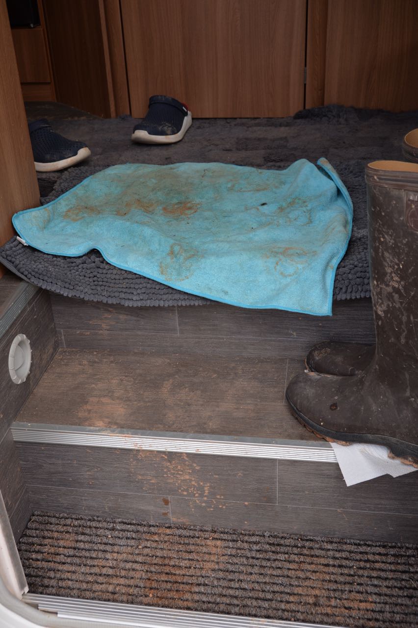 Je weiter wir nach Süden kommen, desto regnerischer wird das Wetter. Ein Zwischenstopp an unserem geliebten Eichenwäldchen im Lavendelfeld in Valensole findet bei Regen statt. Der rötliche Boden ist matschig und bietet sich für Hundepfoten nicht an. Über Riez steuern wir Quinson an. Der Übernachtungsplatz ist ebenfalls wenig einladend. Der Boden sieht aus wie Erdbeersoße. Wir müssen aber in den sauren Apfel beißen.