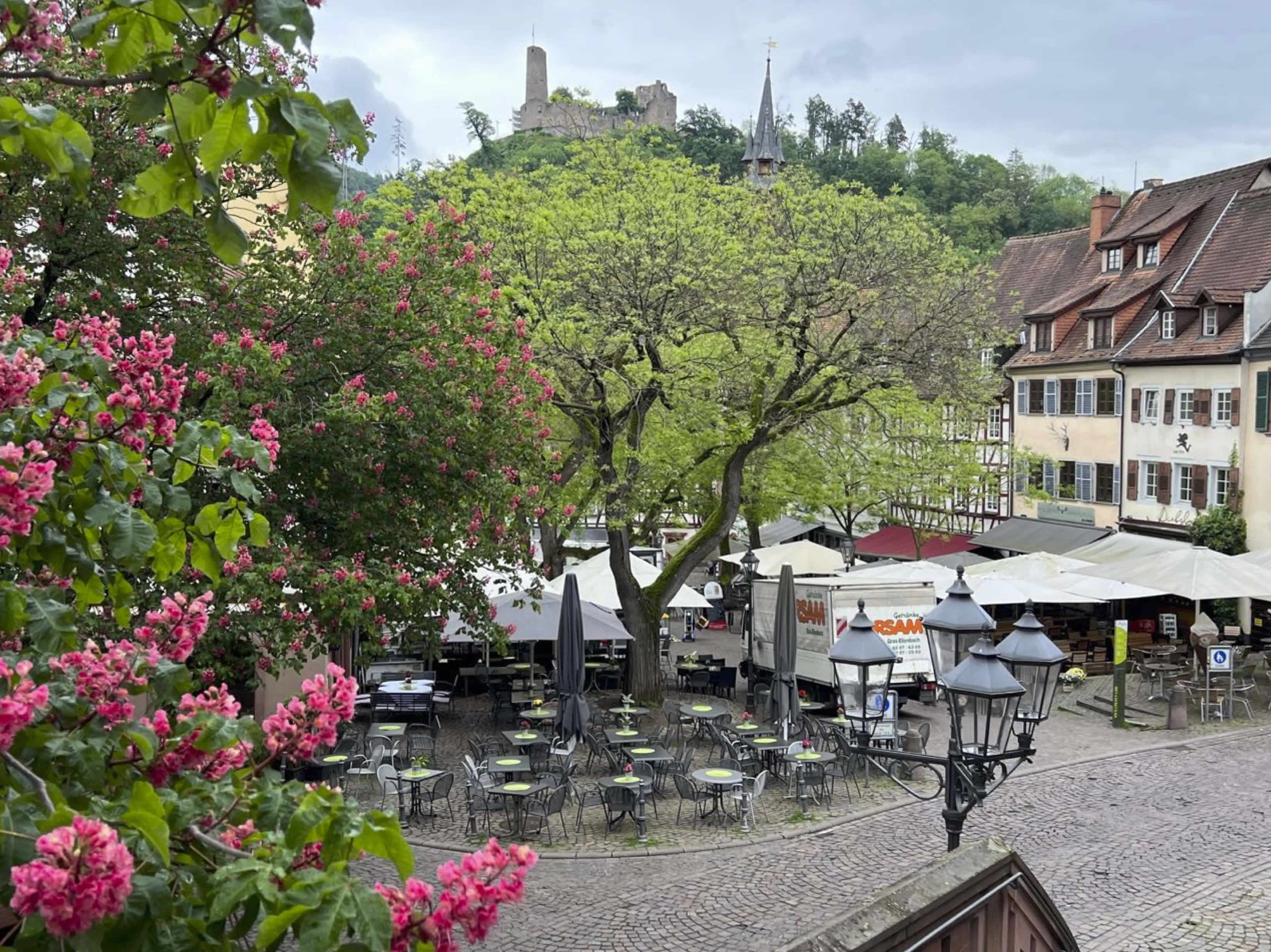 In Weinheim verbringen wir die nächste Nacht. Die Altstadt mit dem wunderbaren Marktplatz lädt zum Verweilen ein. In unserem Lieblings-Spielwarengeschäft werden wir fündig, um bei der Rückkehr den Daheimgebliebenen mit einem Urlaubspräsent eine Freude zu machen.